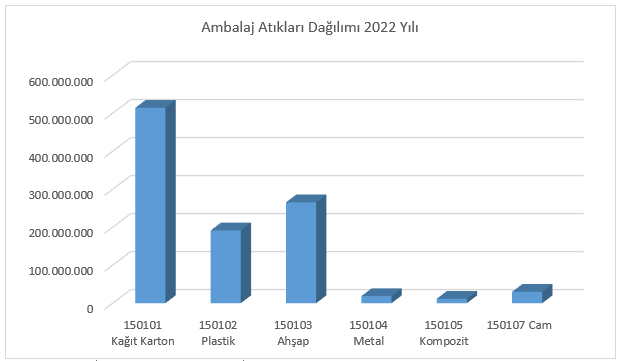 Ambalaj Atıklarının Kontrolü (AAK) Yönetmeliğinde yer alan kirleten öder prensibine göre; ambalaj atıklarının toplama maliyetlerini karşılama sorumluluğu ürünlerini ambalajlı olarak piyasaya süren işletmelere verilmiş olup, bu işletmelerin kayıt altına alınması büyük önem taşımaktadır. Ambalaj Atıklarının Kontrolü (AAK) Yönetmeliği kapsamında ambalaj ve ambalaj atıklarına ilişkin envanterin oluşturulması amacıyla Bakanlığımız tarafından “Ambalaj Bilgi Sistemi” oluşturulmuştur. Ambalaj bilgi sistemine veri girişi yapan kullanıcılardan alınan ambalaj üretimi piyasaya sürülen ambalaj miktarları kullanım amaçları baz alınarak piyasaya sürülen ambalaj cinslerine ve kullanım amaçlarına göre oranları ilişkin sonuçlar Grafik-94 ve Tablo 17’de verilmektedir. Atık üreticileri tarafından 2022 yılında Atık Yönetim Uygulaması atık beyan sisteminde beyan edilen ambalaj atıkları miktarları aşağıdaki Grafik -95’ de yer almaktadır.
