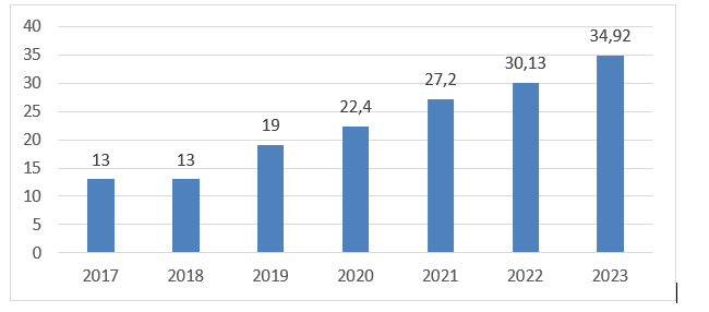 2017’de 13% olan belediye atığı geri kazanım oranı 2021 yılında 27,2%’ye 2022 yılında ise 30,13%’e, 2023 yılında 34,92%’ye yükselmiştir.