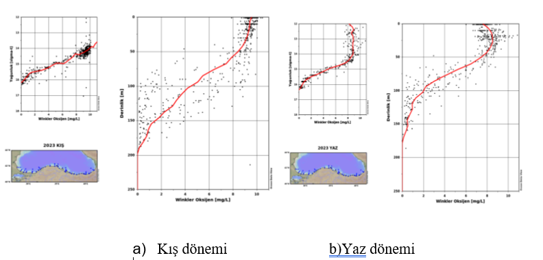 GRAFİK 73- KARADENİZ 2023 YILI KIŞ VE YAZ DÖNEMİ ÇÖZÜNMÜŞ OKSIJEN PROFİLLERİ