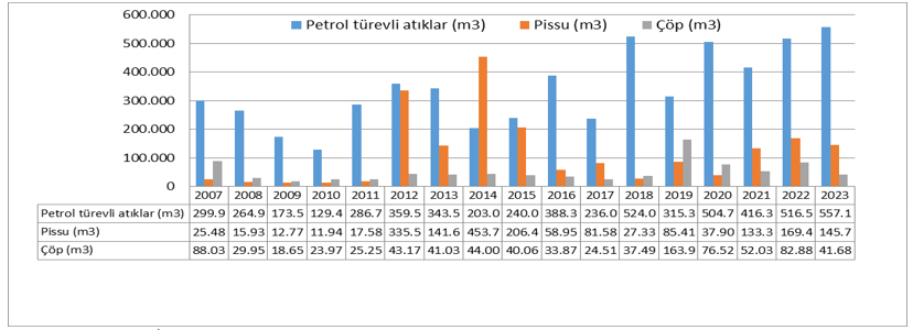 GRAFİK 97- GEMİ KAYNAKLI ATIKLARIN YILLARA GÖRE DAĞILIMI (m3)