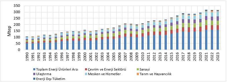 Sektörlere Göre Toplam Enerji Tüketimi; Bu gösterge konut, sanayi, ulaştırma, tarım, enerji dışı, çevrim sektörü için toplam enerji tüketimini petrol eşdeğeri ile gösterir.